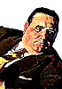 liegender Mann, der mit einer Hand nach vorn greift, siehe auch