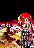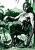 Außerirdischer, auf Speer bzw. Stab gestützt, blickt auf die Seite |