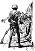 Mann fällt vor Angreifer bzw. Monster bzw. Spinne, siehe auch