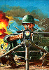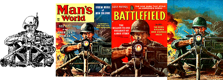 Soldat schießt mit MG auf Dreibein, siehe auch