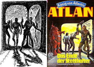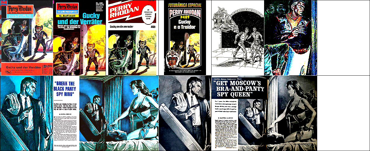 1 - 4 gleiches Bild, in 5 Gucky von 1 nachgezeichnet, der Mann mit Waffe neben dem Türdurchgang ist von 8 nachgezeichnet, 8 - 9 gleiches Bild |