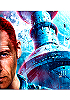 Im Weltraum schwebender Raumsoldat mit verzerrtem Gesicht, siehe auch