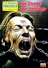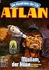 Mann bedroht Personen vor einem Bildschirm, in dem ein Raumboot vor leuchtenden interstellaren Wolken zu sehen ist |