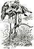Jäger mit erlegtem Wild bzw. Raumfahrer mit Last auf der Schulter |