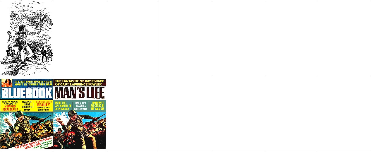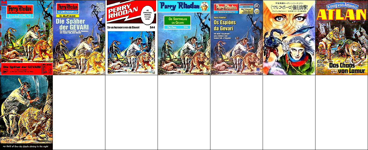 1 - 7 gleiches Bild, 5 seitenverkehrt, die Explosion im Hintergrund ist von 8 nachgezeichnet |