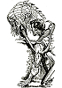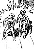 1 - 5 gleiches Bild, weitere ähnliche Körperhaltung, seitenverkehrt, 15 bzw. 16 mögliche Vorbilder für Nachzeichnungen, wobei der ziehende Mann in 15 geradeaus schaut und in 16 zum Betrachter, der geschleifte Mann hat in 15 die Beine etwas aufgestellt und in 16 gestreckt |