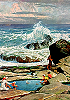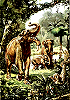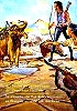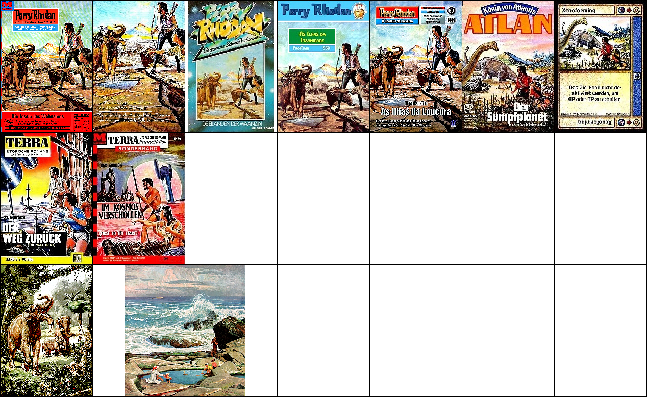 Paar sehr ähnlich, Hintergrund unterschiedlich, 1 - 5, 6 - 7 gleiches Bild, das Deinotherium in 1 ist von 15 nachgezeichnet, der Bildhintergrund in 1 mit dem Tümpel und dem Felsblock am Meeresstrand von 16 |