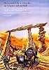 Soldaten im Jeep auf Mond, dahinter Scheinwerfer, der in den Himmels strahlt |