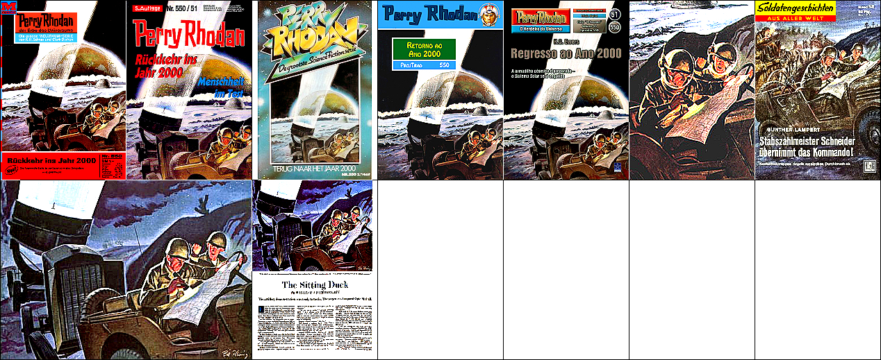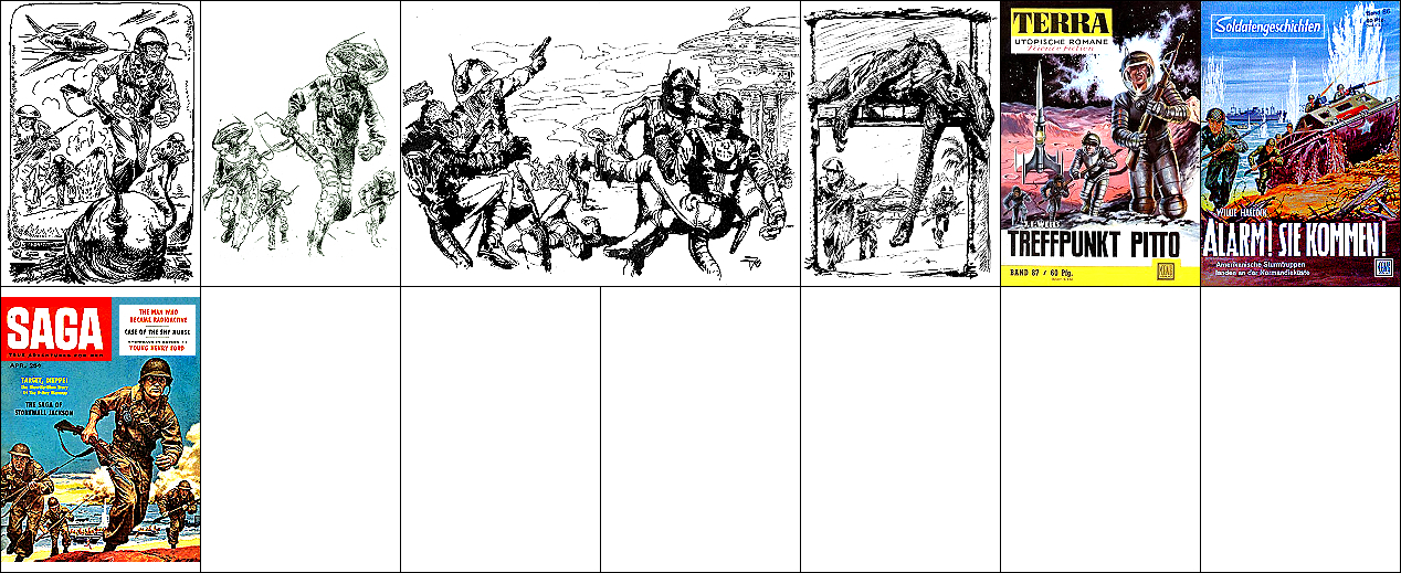 1 - 5 gleiches Bild, die Soldatengruppe und die Bombe kommen seitenverkehrt auch in 6 vor und sind von 8 nachgezeichnet |