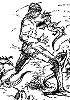 Mann von hinten, der mit einer Hand zur Waffe greift |
