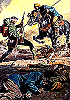 die Gruppe kommt auch in 2 vor, 8 Vorbild, wobei in 2 die Gruppe samt dem kämpfenden Paar als Collage eingebaut wurde |