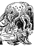 radförmige Raumstation, Skelettschädel vor Blitzentladungen im Weltraum |