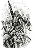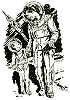 Raumsoldaten begegnen Mann im historischem Gewand in Eislandschaft |