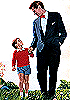 1 - 5 gleiches Bild, in 6 haben die Personen die gleiche Körperhaltung, 8 dient als Vorbild für Nachzeichnung des Paars in 1 und 6, das Flugzeug im Hintergrund von 1 ist von 9 einmontiert |