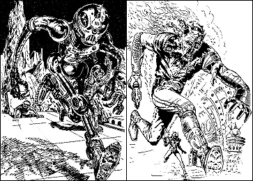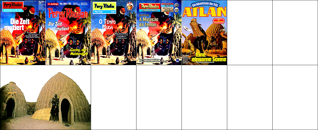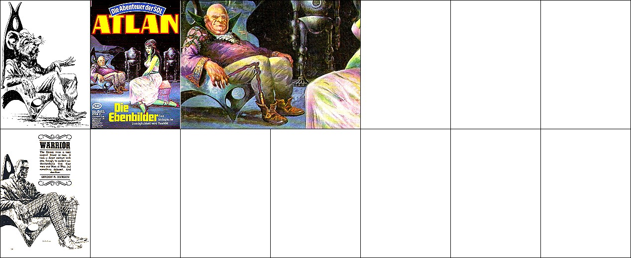 1 - 4 gleiches Bild, der obere Raumfahrer ist von 8 nachgezeichnet, das Raumboot von 10 |