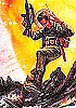 Männer im Fall über Felskante, im Hintergrund Explosionsleuchten |