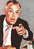 fliegender Raumfahrer mit erschrecktem Gesicht und Frau mit gesenktem Kopf, siehe auch