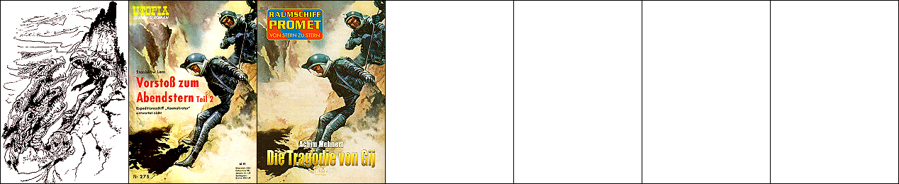 1 - 5 gleiches Bild, Außerirdischer in 6 für japanische Ausgabe nachgezeichnet, der Bildhintergrund von 1 ist von 8 inspiriert |