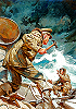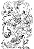 1 - 4 gleiches Bild, der liegende Mann kommt auch in 5 vor, der Affe links in 6, die ganze Szene ist von 8 nachgezeichnet |