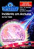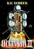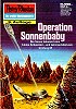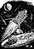 Asteroid strahlt Kugelraumschiff mit 3 Lichtstrahlen an |