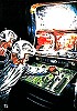 zwei Männer im Raumschiffs-Leitstand, im Sichtfenster ist Atompilz zu sehen |