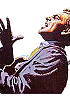 Mann mit Helm, verzerrtem Gesicht und zusammengekrallter Hand, siehe auch