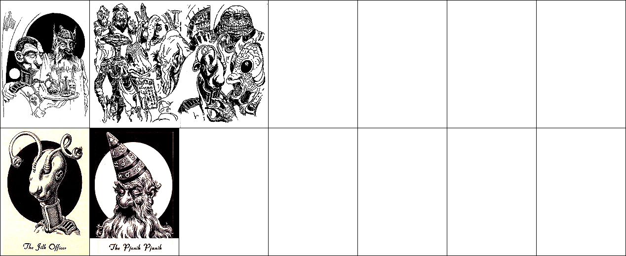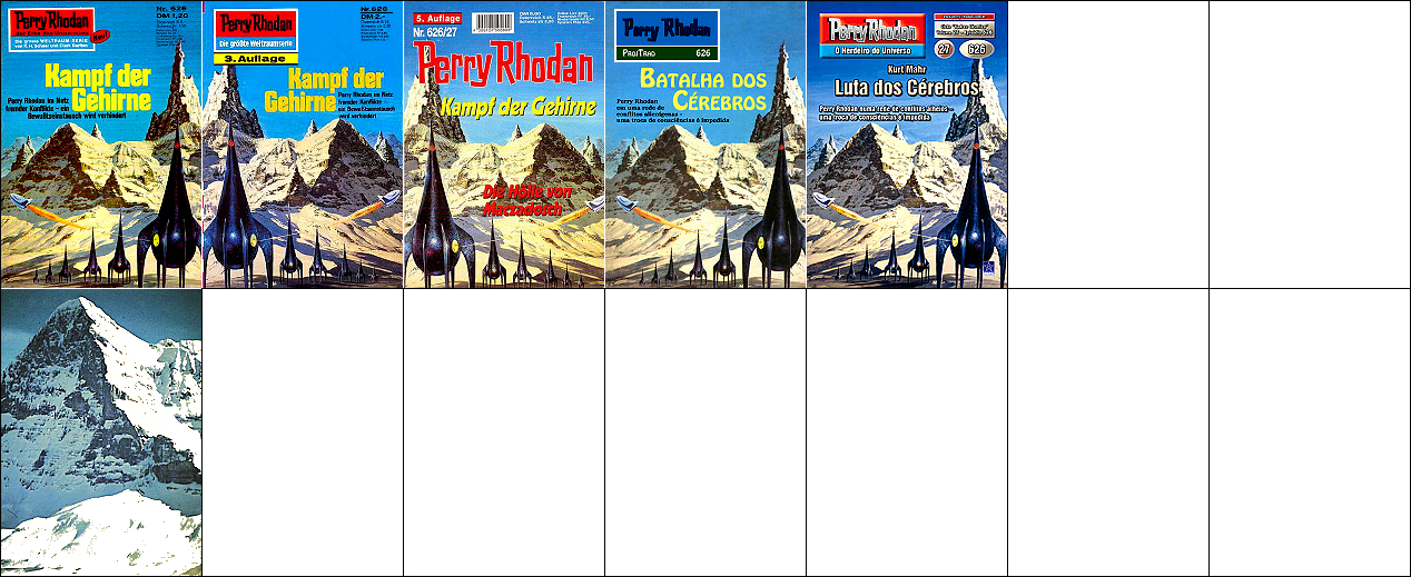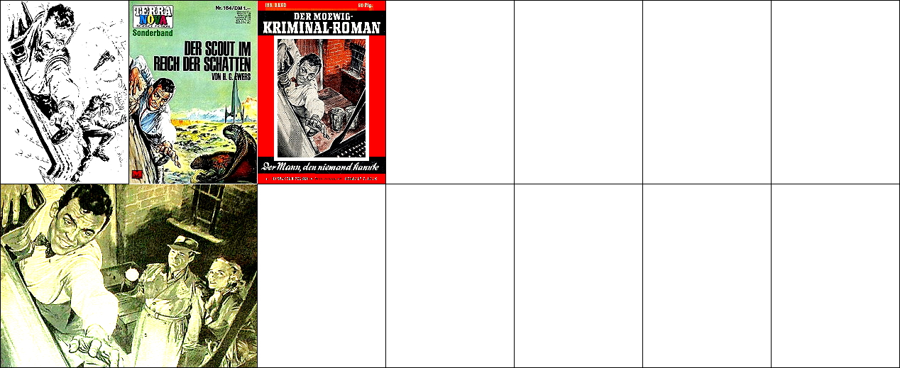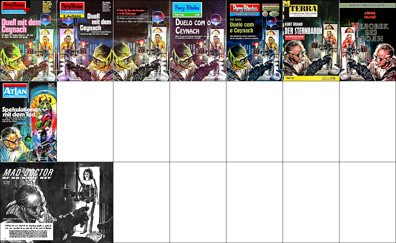 1 - 5 gleiches Bild, 2 - 3 seitenverkehrt, von 6 leicht überarbeitet (Haare Mensch, Kopf Außerirdischer, Hintergrund), 8 ist Vorbild für die Nachzeichnung |