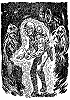 Mann holt mit Händen über dem Kopf zum Schlag gegen anderen wie tot daliegenden Mann aus bzw. Szenen aus dem alten Ägypten mit Menschen mit Vogelköpfen |