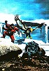 Außerirdischer mit Helm vor feuernder Gruppe |