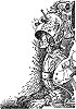 Roboter mit Tentakeln, Monde umarmend bzw. Mann fesselnd |