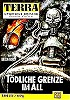 Zwei auf Boden liegende kämpfende Männer vor Raumschiff, siehe auch