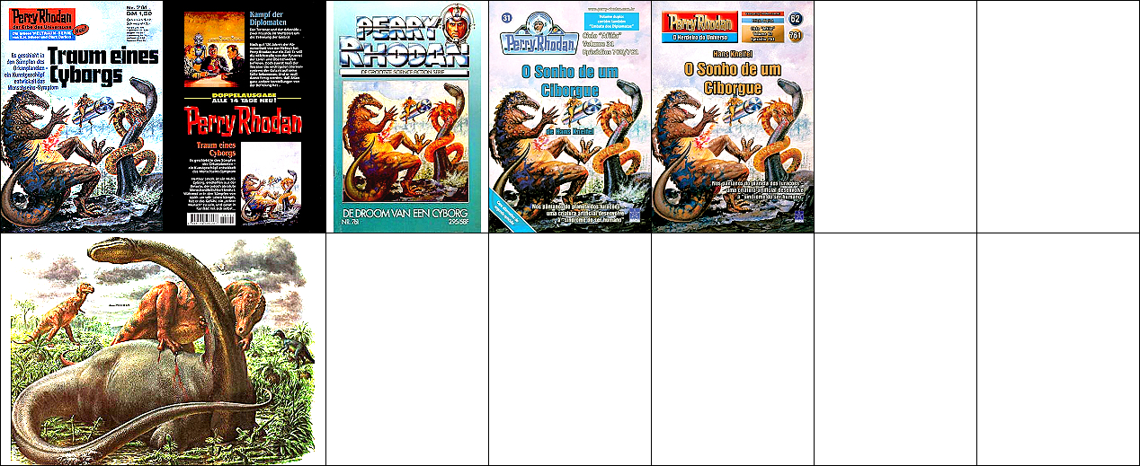 1 - 5 gleiches Bild, der Schlangenhals des Sauriers rechts ist von 8 nachgezeichnet |