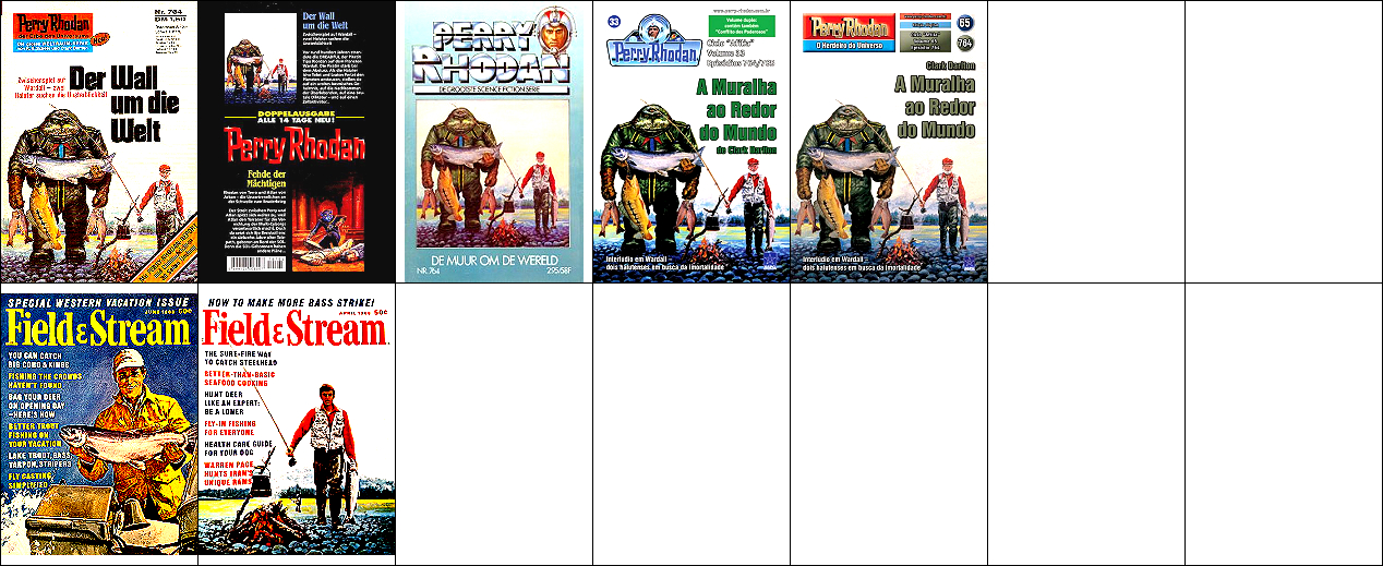 1 - 5 gleiches Bild, der Fisch in den Armen des Haluters ist von 8 übernommen, der Fischer daneben samt dem Bildhintergrund mit dem Schotterboden und dem Lagerfeuer von 9 |