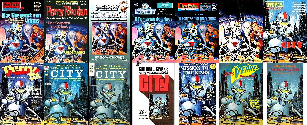 ähnliche Motive, 1 - 5, 6 - 9, 10 - 14 gleiches Bild, 16 - 18 gleiches Bild mit überarbeitetem Hintergrund, 19 - 20 gleiches Bild, 29 Vorbild für diverse Nachzeichnungen, besonders für 19, in dem auch der fallende Mann und der Nebel übernommen ist, 29 - 34 gleiches Bild, daraus auch Roboter als Collage in 22 übernommen |