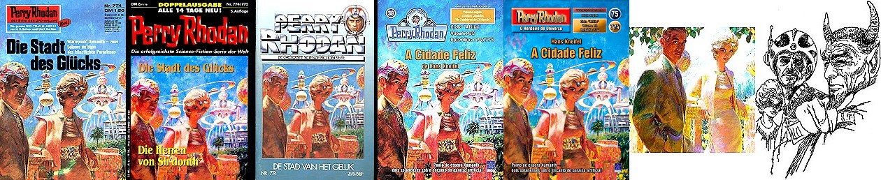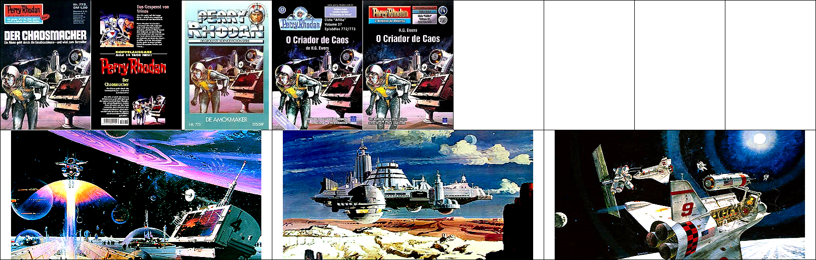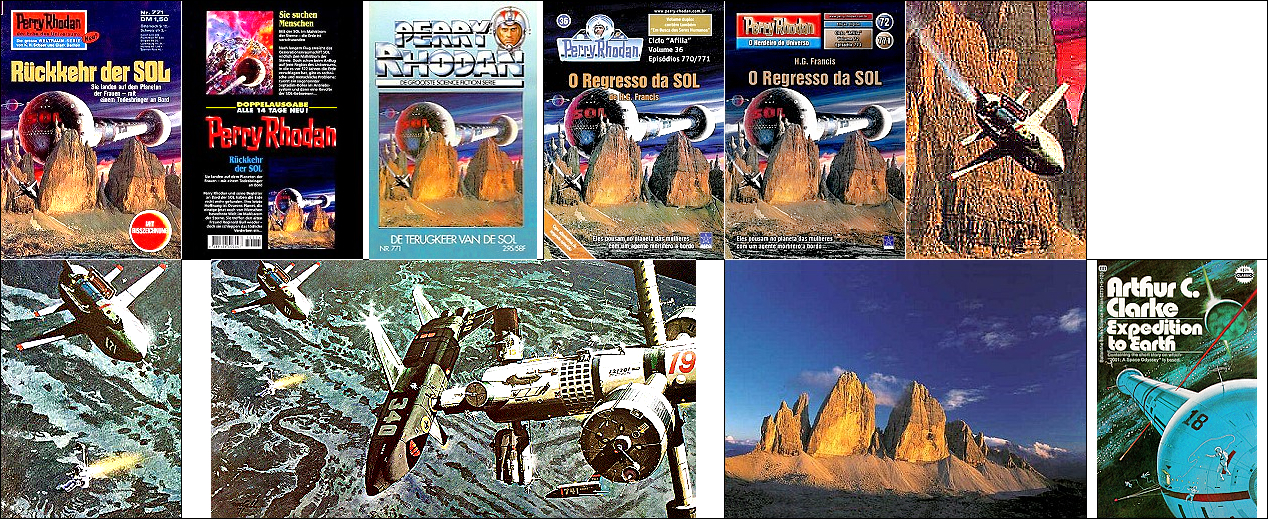 1 - 5 gleiches Bild, 8 Vorbild für Berglandschaft, das kleine Raumschiff links ist von 9 übernommen, die Perspektive des Hantelraumschiffs in 10 könnte Inspiration für das Raumschiff SOL sein |