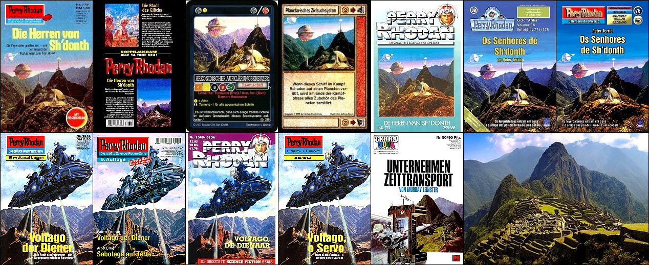 1 - 7 gleiches Bild, 3 und 4 Ausschnitte, 8 - 11 hat auch Machu Picchu als Hintergrund, 12 seitenverkehrt, 13 zeigt die Ruinenstadt ohne futuristische Ergänzungen |