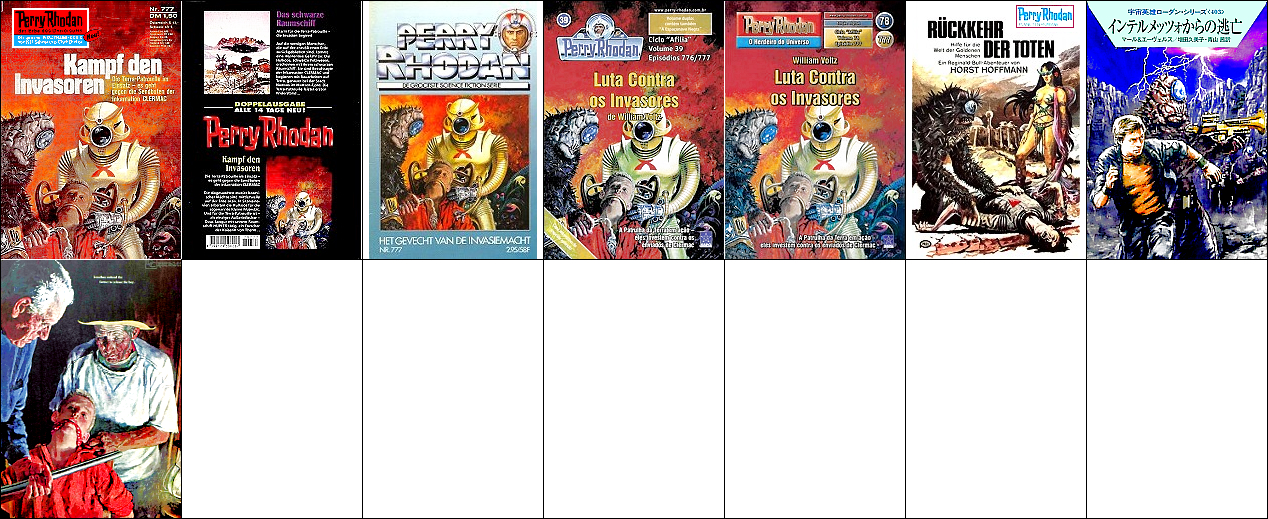 1 - 5 gleiches Bild, 6 ähnliches Motiv, 7 Nachzeichnung von Hulkoo für japanische Ausgabe, 8 ist Vorbild für die Szene in 1, wobei der gefesselte Junge als Collage übernommen wurde |