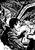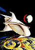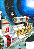 1 - 6 gleiches Bild, das Beiboot und der Planet im Hintergrund sind eine Nachzeichnung von 7 (man beachte auch den teilweise durch den Planeten verdeckten Mond) |