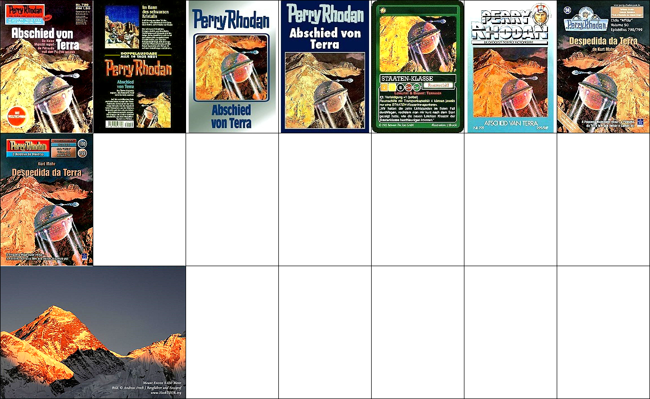 1 - 5 gleiches Bild, 2 seitenverkehrt, die Berge im Hintergrund tauchen auch in 7 auf und sind von 8 übernommen. Sie zeigen eine Szene an der Panamericana in Bolivien, das Space-Shuttle ist von 9 übernommen (man beachte die Ladung, die von den Kranarmen gehalten wird). |