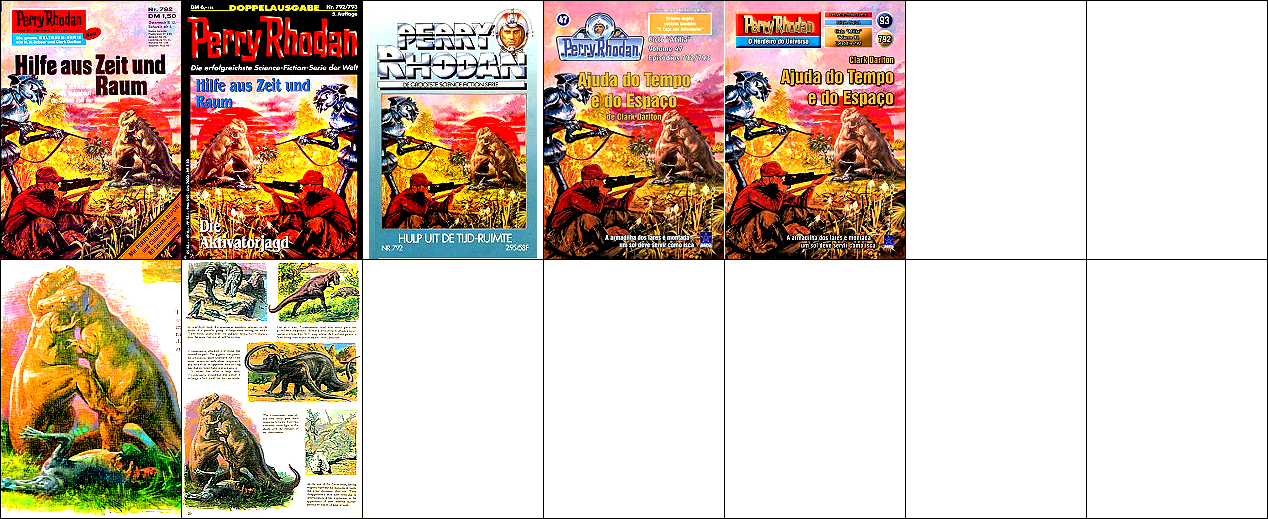 1 - 5 gleiches Bild, 2 seitenverkehrt, die kämpfenden Saurier sind aus 8 entnommen |