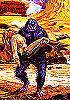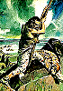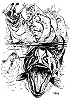 Außerirdischer auf Felsklippe wird von Raubsaurier bedroht, siehe auch