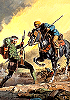1 - 5 gleiches Bild, die Szene ist von 8 nachgezeichnet (man beachte auch den Hintergrund, insbesondere seine Farbgebung), die liegenden Männer vorn sind eingeklebt |