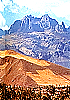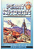 Berglandschaft mit Wachkuppeln, startendem Walzenraumer, Festung und Saurier |