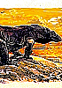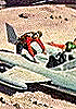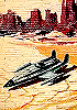 Tiergerippe in Felslandschaft, daneben kleines Raumboot |