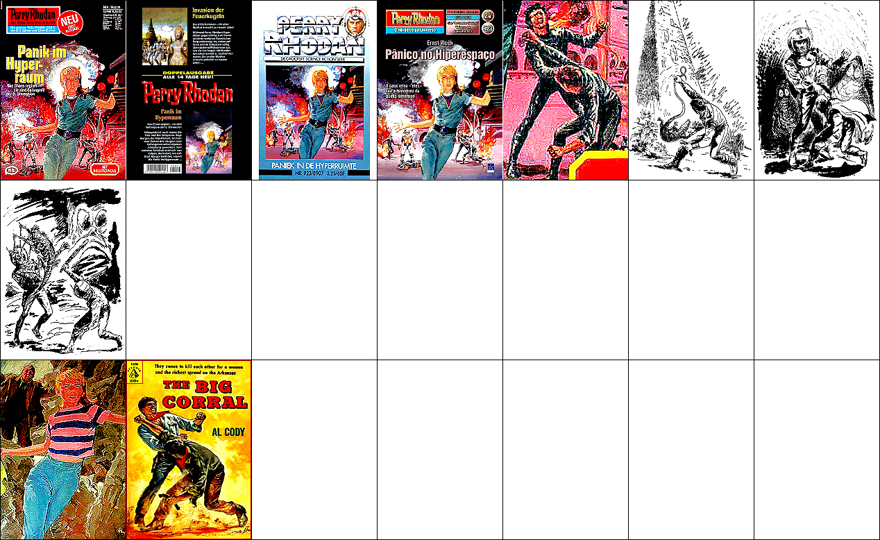 1 - 4 gleiches Bild, das Raumboot kommt auch in 6 und 8 vor und ist von 15 nachgezeichnet |