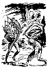 1 - 4 gleiches Bild, das Mädchen ist von 15 entnommen, die kleine Kampfszene am rechten Bildrand von 16 nachgezeichnet, der rechte Mann kommt auch in 6 - 8 vor |