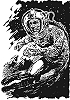 fliegender Weltraummensch ohne Schutzanzug mit abgerundeter Körperhaltung |
