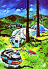 1 - 4 gleiches Bild, 2 seitenverkehrt, die Bergformation im Hintergrund ist aus 8 entnommen und zeigen die Queen-Victoria-Formation in Queens Garden, Bryce Canyon, Utah, USA, der Mann mit dem Bogen ist aus 9 entnommen, das Raumboot hat sein Vorbild in 10 |