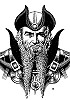 Mann mit weißem Haar und Gabelbart mit Offizieren am Kartentisch |