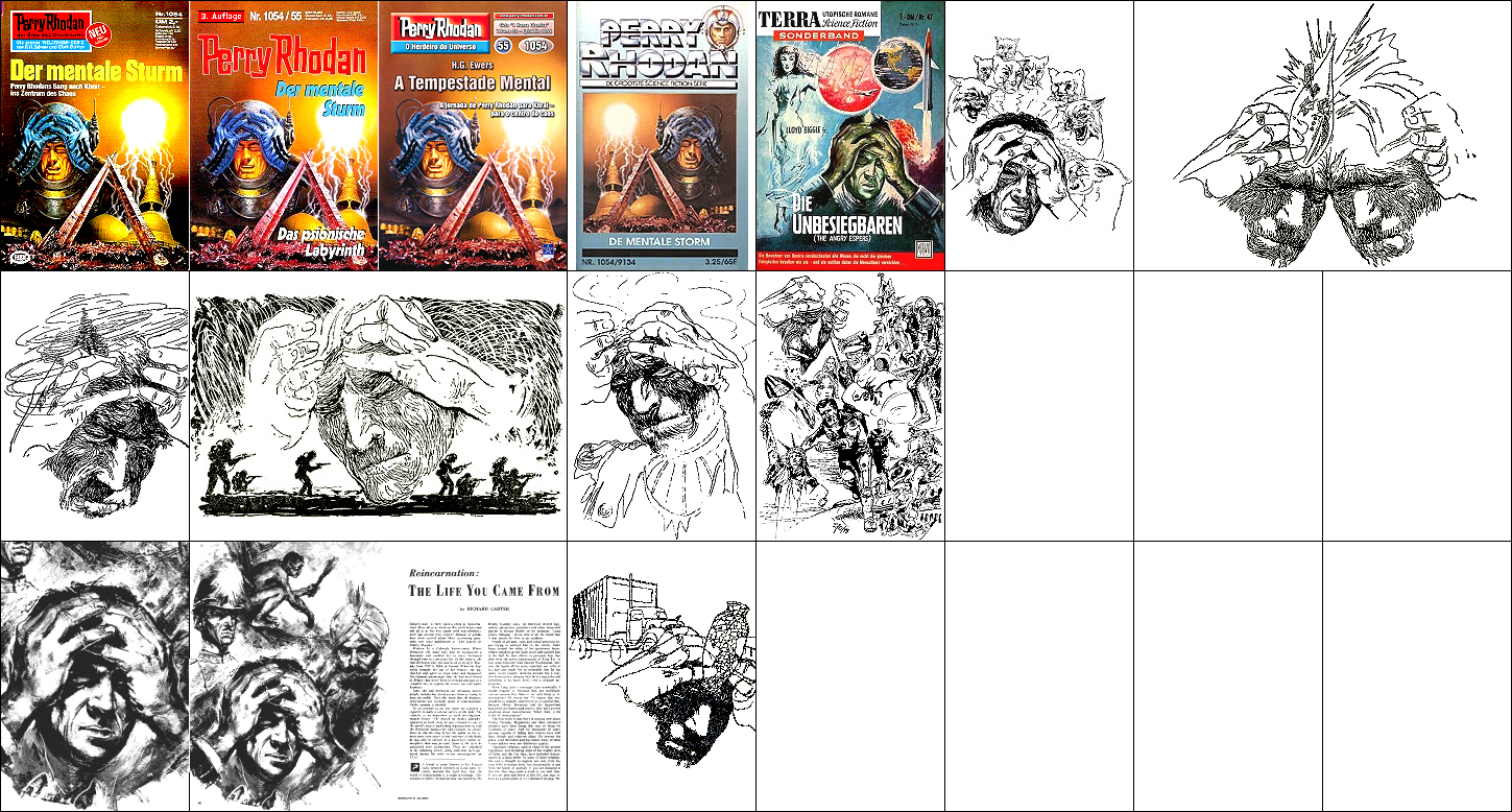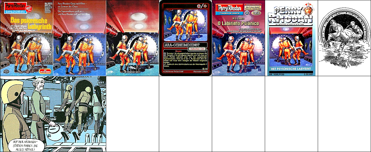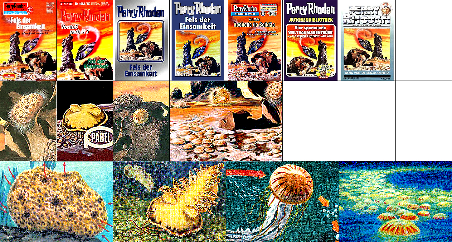 1 - 5 gleiches Bild, 4 seitenverkehrt, der Körper des Außerirdischen wurde vom Badeschwamm in 8 entnommen und ergänzt |